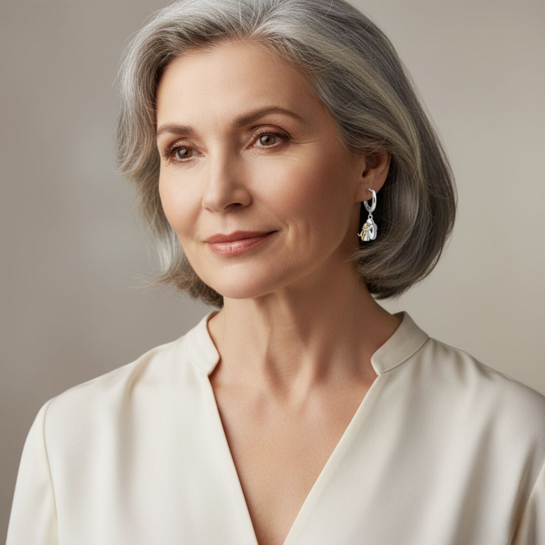 These beautiful earrings featuring the unique motif of a girl hugging her dog symbolize pure love and unconditional friendship. Crafted in elegant silver and gold tones, they are perfect for those who cherish their furry friends.